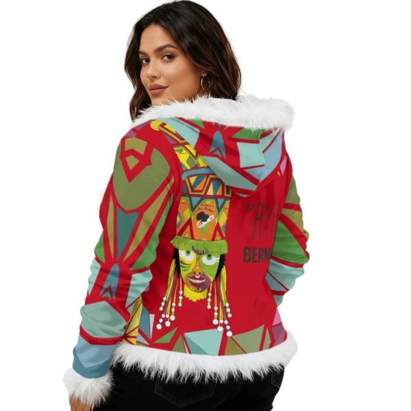 Bermuda Gombey Ayo! Faux Fur Hooded Sweater Jacket (Red)