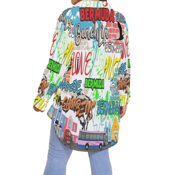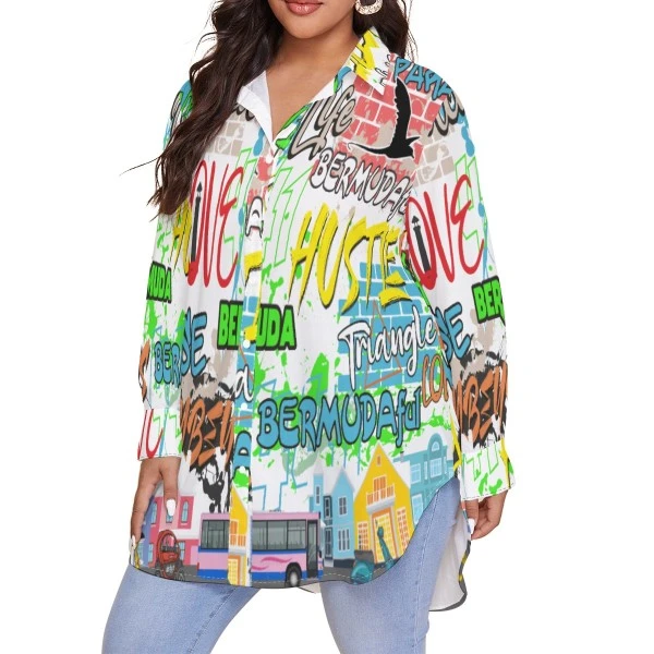 Bermuda Graffiti - Women's Long Sleeve Blouse (Plus Size)