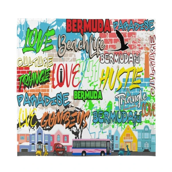 Bermuda Graffiti Silk Scarf (White)