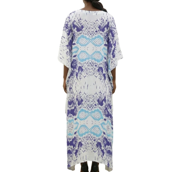 Women's V-neck Kaftan Robe-Dress Dashiki Fit Blue Cupmatch Print